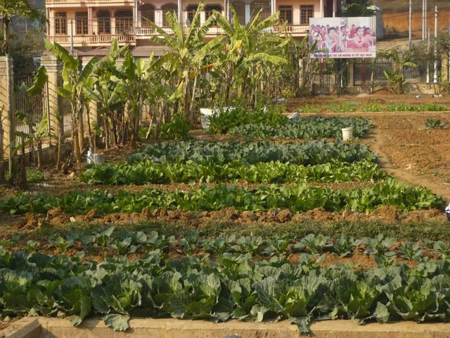 Vừa qua cổng trung tâm. Là một vườn rau rộng lớn và xanh tốt: