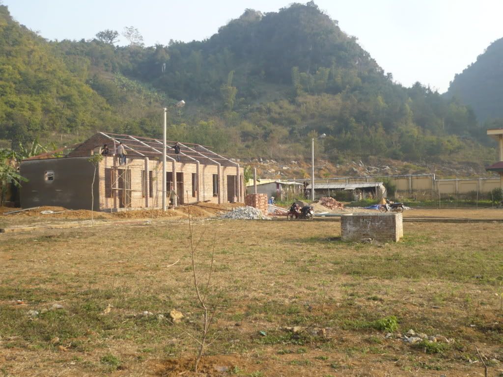 Phía bên trái là một số lớp học đang được xây dựng, sẽ là nơi học tập mới khan trang hơn, đầy đủ tiện nghi hơn cho các em: